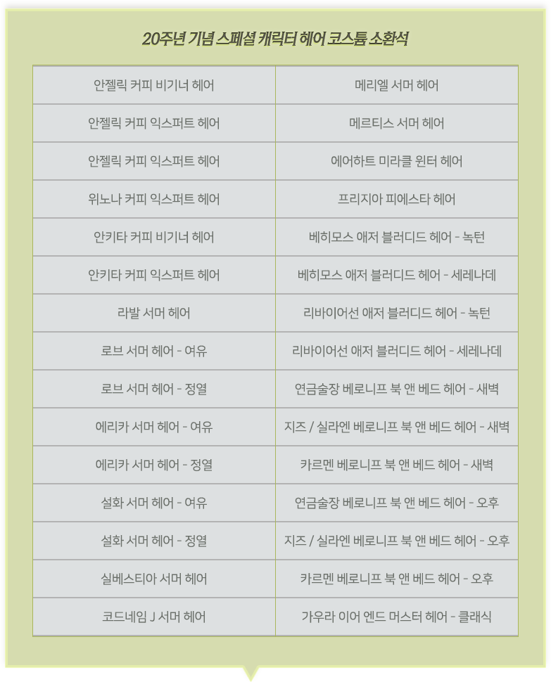 20주년 기념 캐릭터 헤어 코스튬 소환석 1개