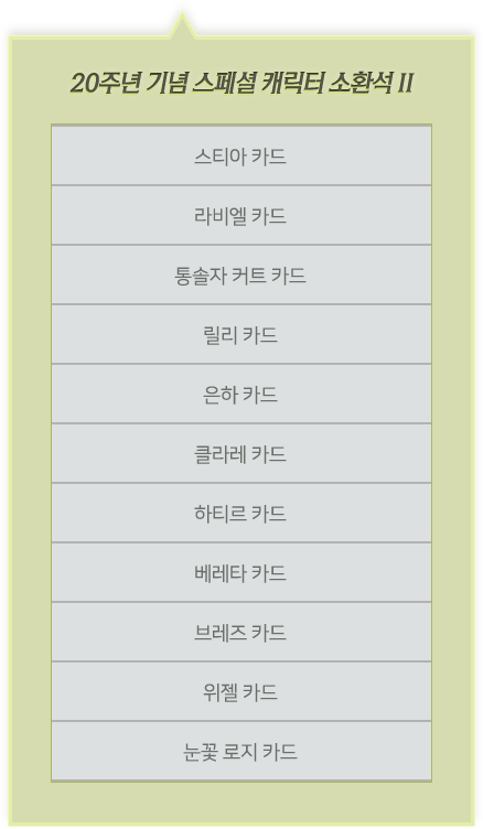 20주년 기념 스페셜 캐릭터 소환석 Ⅱ 1개