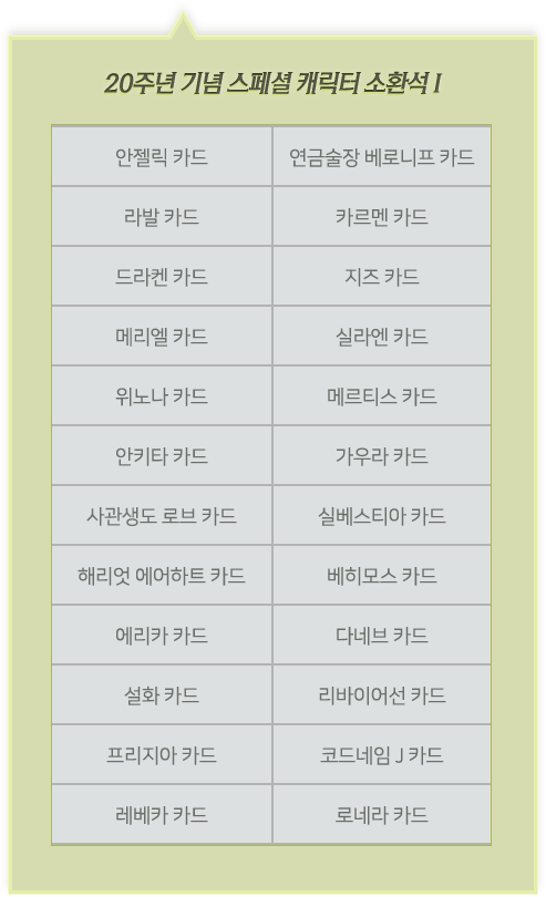 - 20주년 기념 캐릭터 훈장 소환석 1개